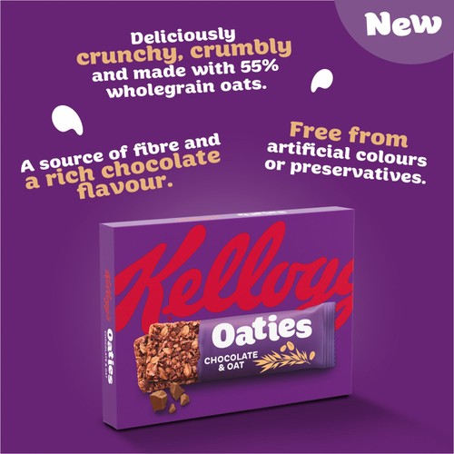 These Kellogg's Oaties bars deliver a satisfyingly crunchy and crumbly texture combined with a rich chocolate flavour. They are formulated using 55% wholegrain oats, making them a sensible choice for a quick indulgence. Each package contains convenient twin-packs ideal for easy portability.