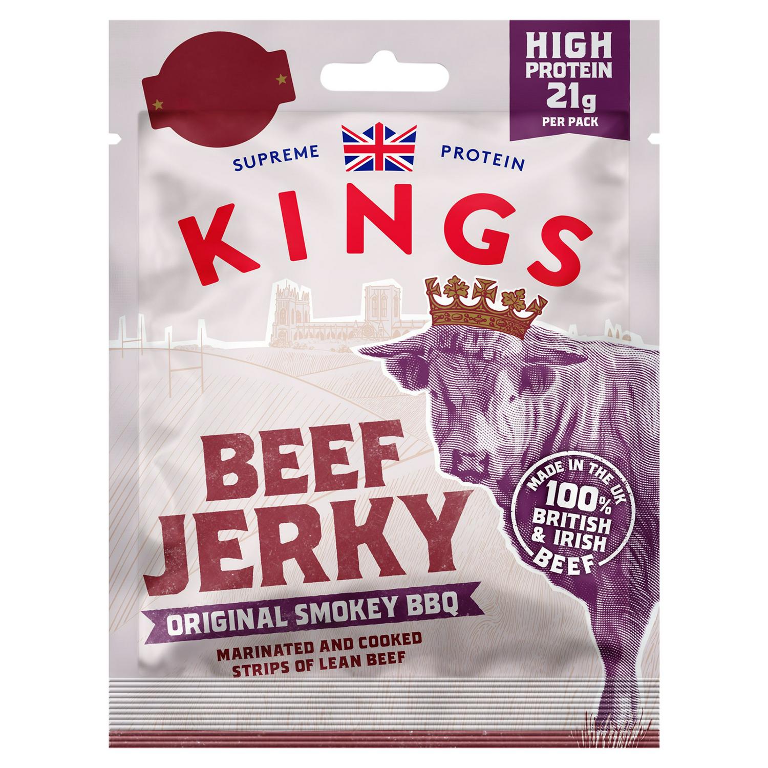 Kings Beef Jerky offers a satisfying, flavourful option for on-the-go nutrition. These marinated and cooked strips are made from lean beef, delivering substantial protein content in every 60g pack. Enjoy the new Original Smokey BBQ flavour as a convenient, high-protein snack.