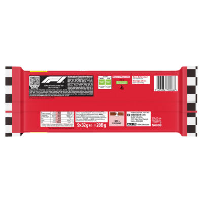 FeaturesA delicious chocolate bar, comprising a crispy wafer covered with a tasty layer of milk chocolate. Multipack of 9 Snacksize KitKat Chunky Milk Chocolate bars. A great treat when you're enjoying a break, a KitKat with a bit more bite!. No artificial colours, flavours or preservatives. Suitable for vegetarians. Rainforest Alliance Certified cocoa.