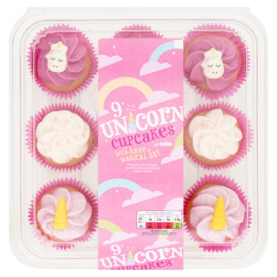 These delightful Unicorn Cupcakes from The BAKERY at ASDA come supplied in a convenient pack of nine ready-to-eat treats. They provide a fun visual option for celebrations or sweet indulgences throughout the week. Each component is carefully prepared using standard baking ingredients provided by the baker.