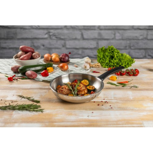 The Kuhn Rikon CLASSIC frying pan is constructed from uncoated stainless steel, enabling high-temperature cooking for superior searing results. This 24cm pan excels at developing deep flavours and achieving professional browning on proteins and vegetables. Enjoy precise control when cooking demanding recipes that require intense heat application.