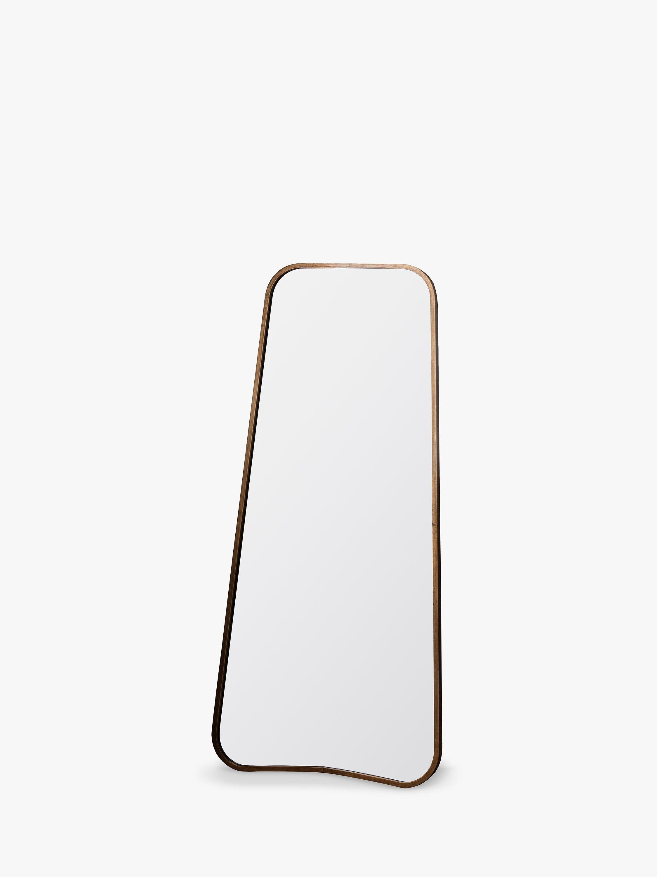 This Kurva Leaner Mirror offers an elegant design perfect for contemporary interiors, measuring 123 x 56.5 cm. Featuring distinct flowing curved corners within its durable metal frame, this large mirror captures excellent full-length reflections. It is designed to lean securely against any wall surface, avoiding the need for direct mounting hardware.