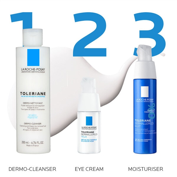 Read Moretoleriane dermallergo night cream reinforces the skin barrier function and provides up to 48h hydration for immediate relief gentle formula helps reduce redness and itchiness associated with dry skin its nonstaining and refreshing gel texture leaves skin feeling comfortable for a good night sleep