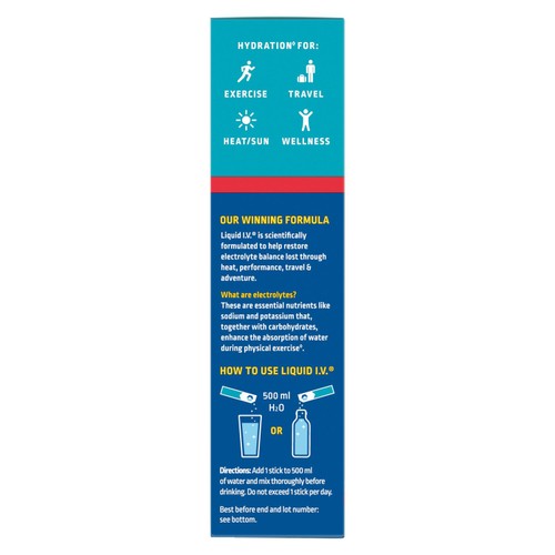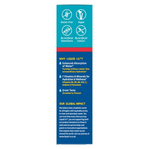 Liquid I.V. Strawberry Hydration Multiplier is an electrolyte powder mix formulated to restore balance lost during activity or travel. This scientifically studied solution offers more effective hydration than water alone. Experience the great strawberry flavour in an easy-to-mix sachet format.