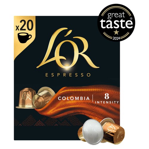 L’OR Colombia offers a smooth and sweet espresso experience developed by Coffee Artists. This blend reveals complex citrus fruit notes at its core, complemented by an elegant aftertaste. The flavour is inspired by the warm lushness of its origin country, Colombia.