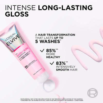 Product InformationWant to get the shiniest hair of your life*? Discover L'Oreal Paris Elvive Glycolic Gloss Conditioner, the 2nd step of our new at-home glossing routine. Powered with [Glycolic Acid] known for its multiple benefits in skincare, the 11% Gloss Complex with [Glycolic Acid] penetrates the hair's fibre improving shine, smoothness & strength. Instantly transform your hair for up to 5 x washes.** The result? The Gloss Complex with [Glycolic Acid] has a lightweight smoothing effect on hair as it perfectly smoothens the fibre's surface. Hair is shiny, smooth & soft to touch. What makes it effective? Shiny hair is healthy-looking hair because its smooth surface perfectly reflects light. Hair damage disrupts cuticles, making fibres rough, porous, and dull unable to reflect light. Glycolic Gloss Conditioner is powered with [Glycolic Acid] which has a small molecular weight able to penetrate the hair & inject it with care. The Glycolic Gloss Complex contains conditioning agents to seal cuticles with a lasting shine glaze. Hair is shinier & smoother than ever before. Suitable for all: Effective on all hair types, ranging from straight, wavy, curly, and coily. *Consumer Use Test, women with dull hair, shampoo + conditioner. 78% of 160 UK women agreed ** instrumental test after one application of the trinomen & 5 applications of the shampoo. *** instrumental test after application of the shampoo + conditioner. **** instrumental test after use of the shampoo + conditioner + rinse-off treatment.