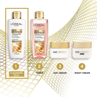 Product InformationA cleansing milk designed especially for 55+, post menopausal skin Used daily, skin looks fresh and revitalised. Cleanses the skin of make up and impurities and over time, leaves skin feeling smooth, comfortable and fortified. This cleansing milk will fortify the skin as it cleanses, leaving skin smoother and energised. The revitalising milk is enriched with essential nutrients, magnesium and Vitamin C. Results? Perfectly cleansed, skin feels replenished and signs of fatigue are reduced. With continuous daily use, skin is left feeling smooth, comfortable and fortified. L'Oreal Commitments to Your Skin Tolerance & efficacy are evaluated by independent institutes with at least 600 applications on skin, even sensitive skin. L'Oréal has been committed to a world without animal testing for more than 30 years. Packaging may vary.