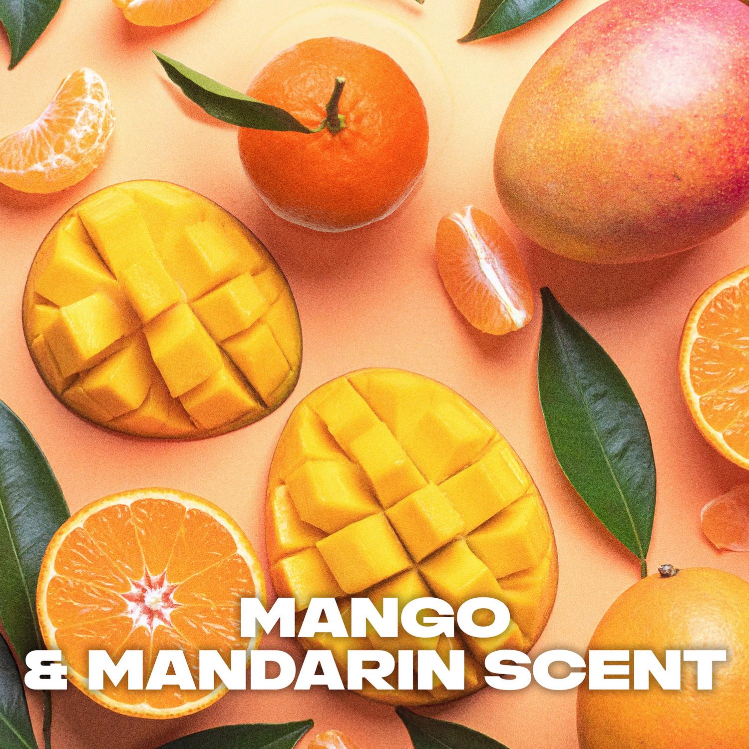 Our antiperspirant spray has got you covered with a refreshing mango and mandarin scent