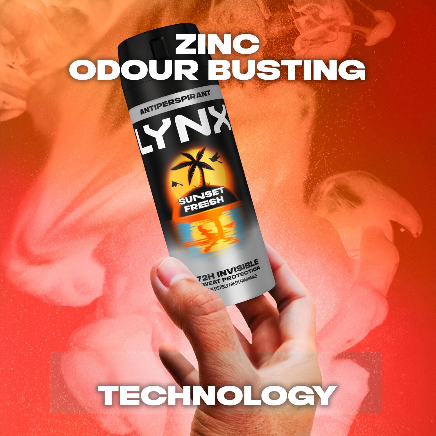 Read MoreLYNX Sunset Fresh Anti-Perspirant Aerosol keeps you cool no matter what while protecting your clothes from white marks and stains
