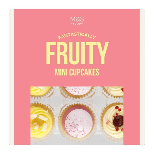 M&S Food offers a delightful package containing nine hand-finished mini cupcakes, perfect for sharing or personal indulgence. This selection is centered around vibrant, fruity flavour profiles sourced from quality ingredients. These small cakes are finished with assorted toppings, providing appealing visual variety and varied texture.