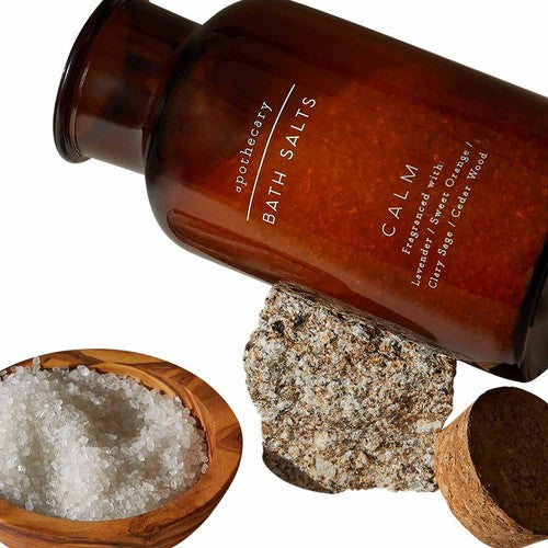 Indulge in a truly relaxing soak by sprinkling these large 600g M&S Apothecary bath salts into your warm bath. This formulation combines aromatic essential oils designed to create a deeply calming and soothing experience. The salts arrive in premium glass packaging featuring a gold-tone closure for a contemporary aesthetic.