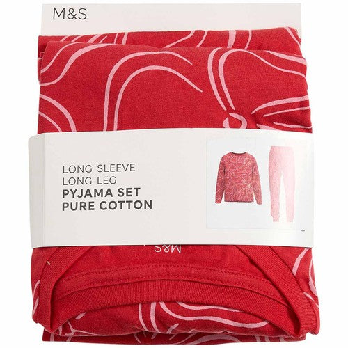 Ensure your child is comfortably ready for sleep in these pure cotton pyjamas from M&S. This breathable set is designed for a comfortable night's rest, featuring a classic long-sleeved top and coordinating bottoms. The regular fit ensures ease of movement throughout the night.
