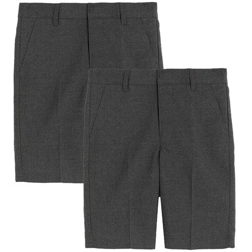 M&S Boys Slim Leg School Shorts, 2 Pack, 13-14 Years, Grey