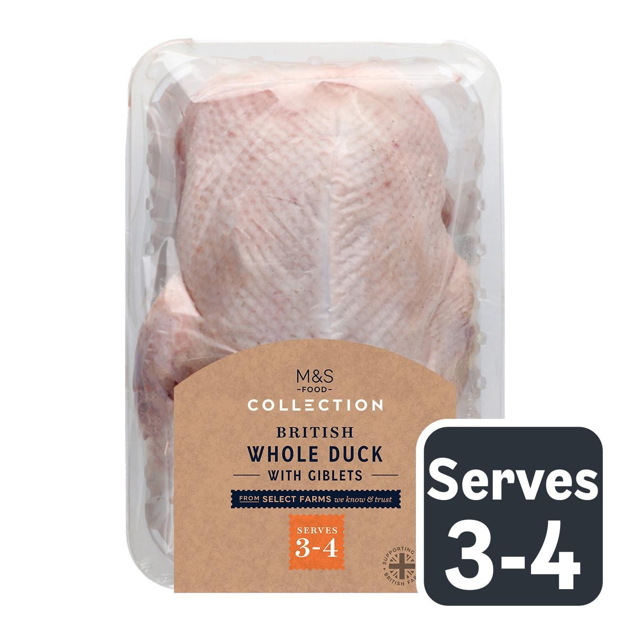 This M&S Collection whole duck is sourced from select British farms, offering quality guaranteed by the brand. This fresh poultry is ready to be prepared for a traditional family centrepiece meal. Designed to serve approximately three to four people, it simplifies your weekend dinner planning.