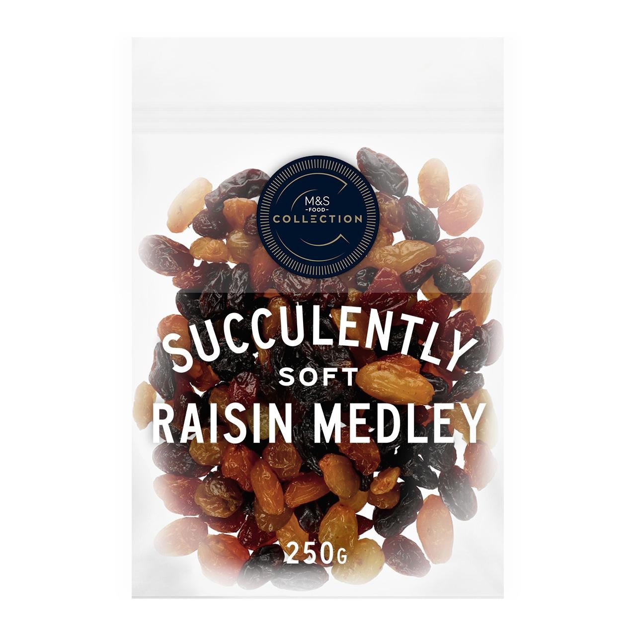 This M&S Collection Soft Raisin Medley offers a mix of golden, Thompson, and crimson raisins. The fruit has been partially rehydrated to enhance the soft texture of this delicious snack. It is a simple way to complement your balanced daily nutritional intake.