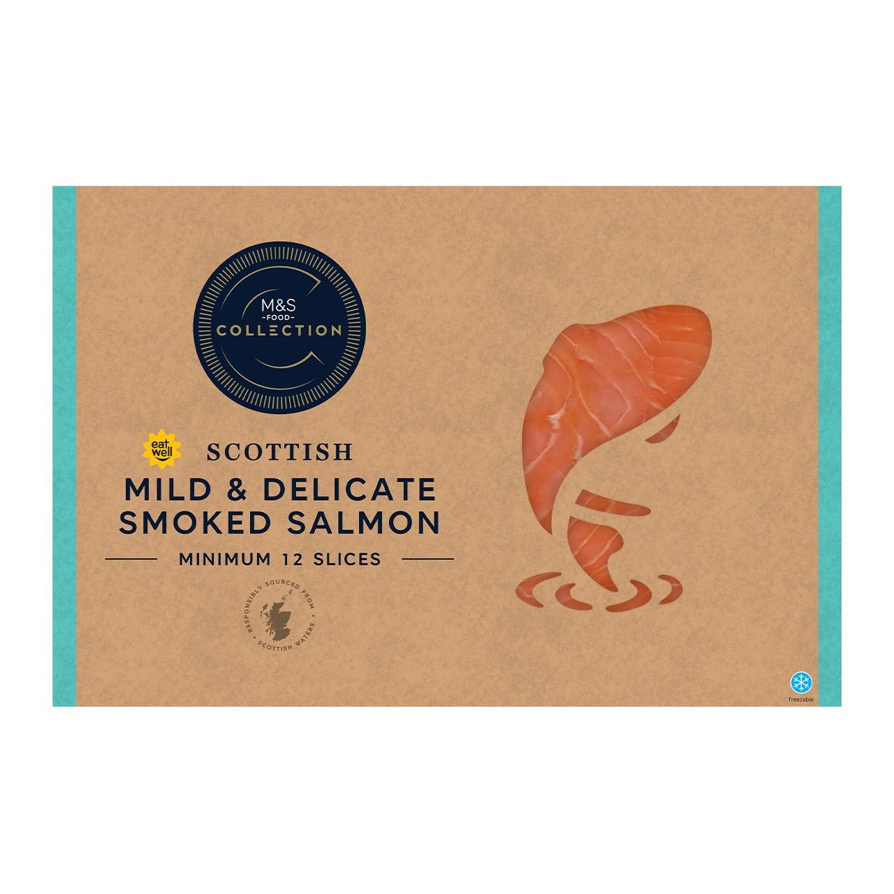 This M&S Collection salmon is expertly cured and twice smoked over oak wood shavings using a traditional kiln process. This careful method ensures a characteristically delicate flavour profile and a wonderfully velvety soft texture in every slice. The salmon is sourced from approved M&S Select Farms located around the West Coast of Scotland, Shetland, and Orkney Islands.