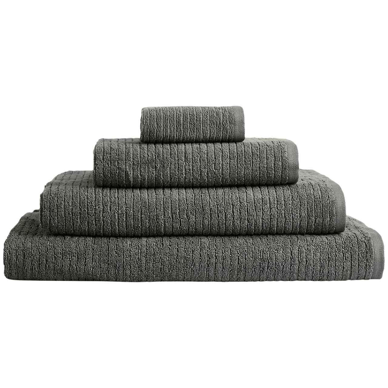 Soft and absorbent, this charcoal hand towel is crafted from pure cotton and features a subtle stripe texture. This essential item integrates specialized technology to ensure it retains its appearance and performance over frequent laundering cycles.