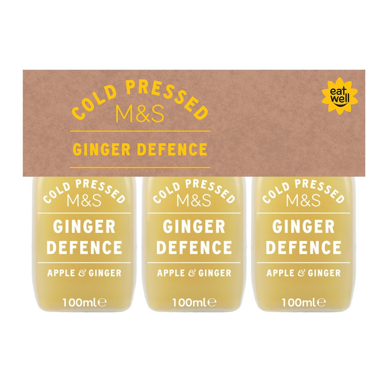a blend of cold pressed apple and ginger juices with added Vitamin C
