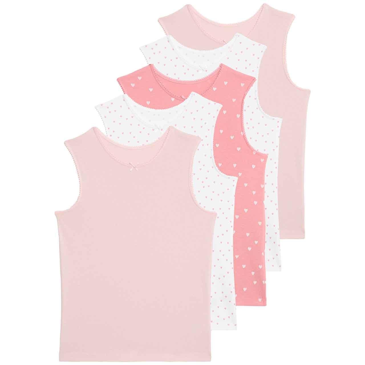 Stock up on comfortable essentials with this M&S multi-pack of girls' vests. Made from pure cotton, these sleeveless tops provide a soft, breathable base layer for daily activities. This useful set includes coordinating pink and white designs featuring charming heart prints and finishing details.