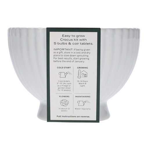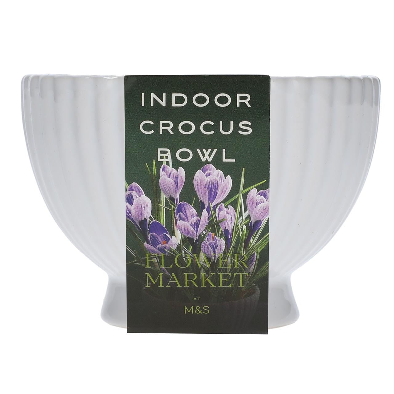 This M&S Indoor Crocus Bowl provides a ready-made, stylish way to enjoy fresh blooms indoors. The white ceramic container features a decorative fluted rim and a sturdy base, offering a neutral canvas for vibrant flowers. It is specifically designed to house and nurture crocus bulbs throughout their growth cycle. Enjoy the beauty of spring flowers even when kept inside your home environment.