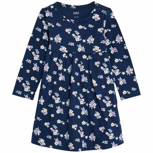 This comfortable long-sleeved dress from M&S is constructed from pure cotton, making it an ideal addition to their cold-weather wardrobe. The navy piece features a pretty, all-over floral print throughout the fabric for a classic look.