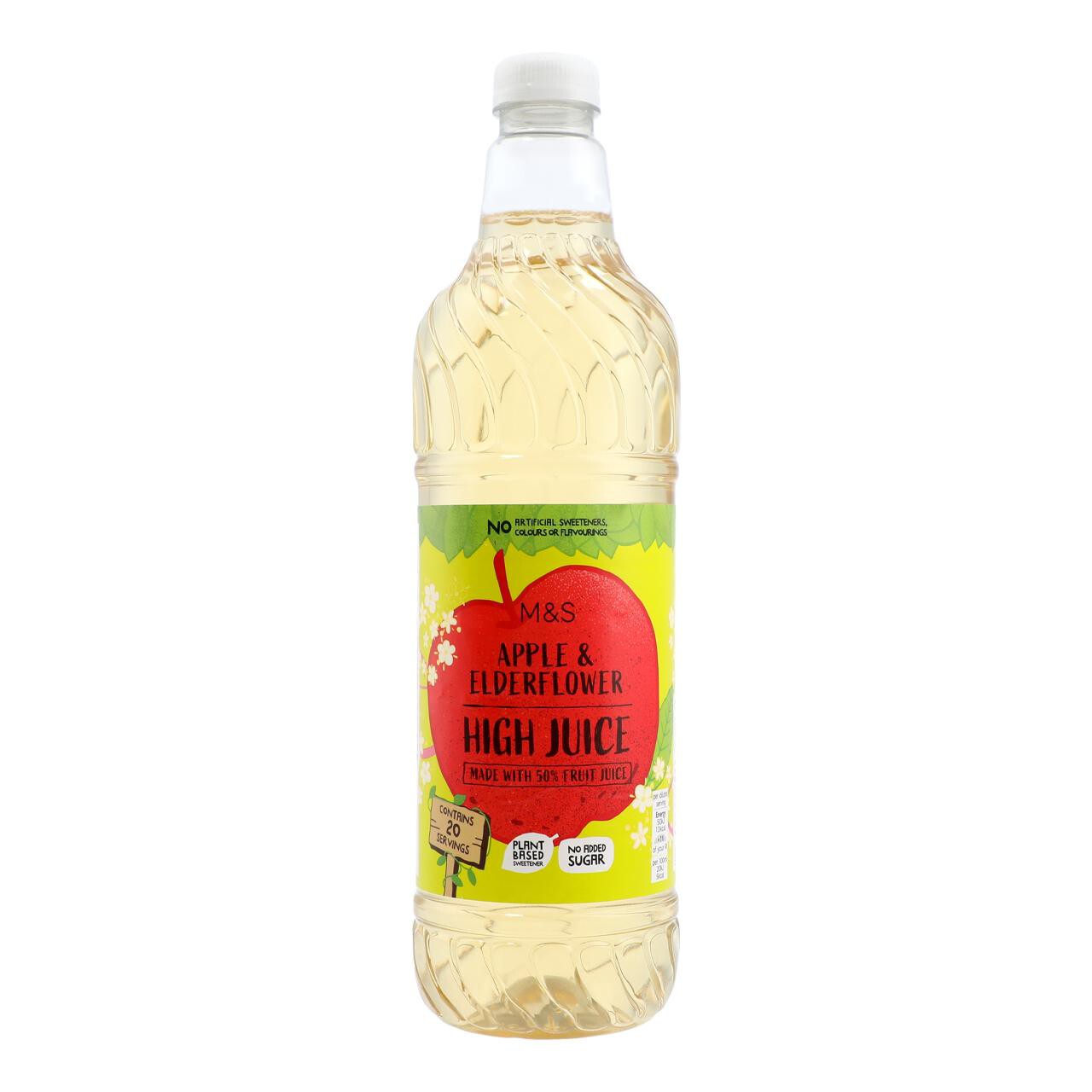 M&S Apple & Elderflower High Juice No Added SugarA naturally refreshing juice drink flavoured with apple and elderflower, with no added sugar. Contains 50% fruit juice. Dilute 1 part cordial with 4 parts water and serve chilled. Suitable for vegans.