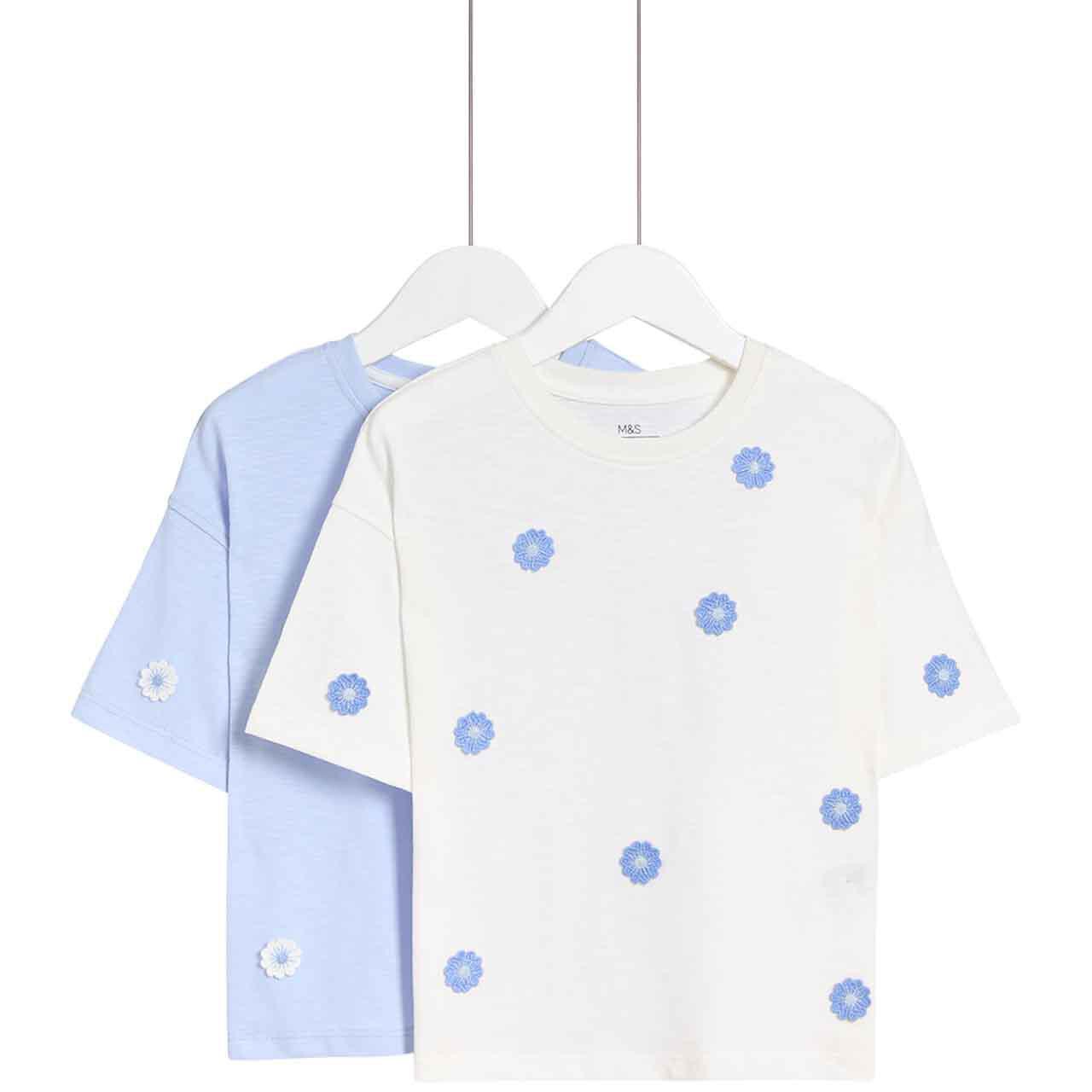 Refresh their wardrobe with this convenient two-pack of pure cotton tops from M&S, perfect for daily wear. These essential items are constructed to offer a comfortable regular fit for active children. The pack provides two different tops, offering variety and practicality for school or weekend activities.