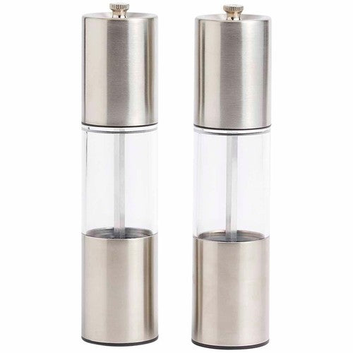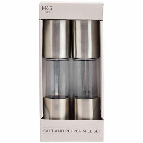 These stylish M&S mills offer a contemporary addition to your dining setup. They are crafted entirely from durable stainless steel, ensuring a sophisticated and long-lasting presence on your countertop or table. This high-quality pair provides a sleek look alongside essential functionality for all your daily seasoning requirements, making them an excellent choice for frequent use.
