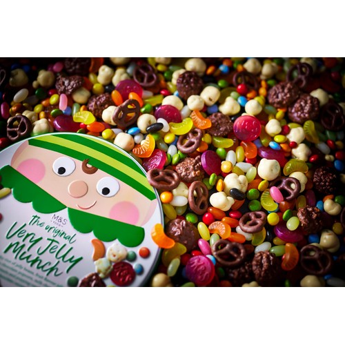 This M&S offering presents The Original Very Jelly Munch assortment for varied snacking enjoyment. It combines several popular confectionery types into one appealing package for sharing or personal indulgence. Customers receive a diverse mix of textures and flavours from jellies to coated chocolate snacks.