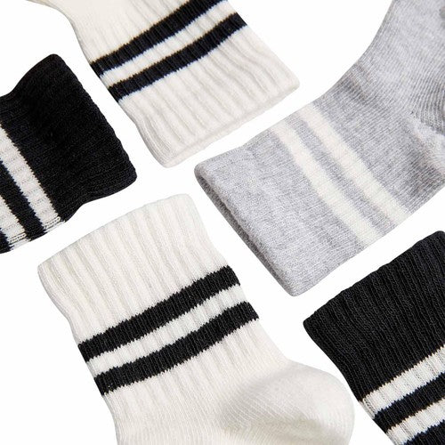 Refresh your little one's essentials with this convenient five-pack of M&S cotton-rich baby socks. Designed for daily wear, these unisex socks come in a versatile black colourway featuring sporty stripes for a subtle visual detail. They offer necessary comfort and durability for growing feet throughout the day.