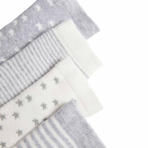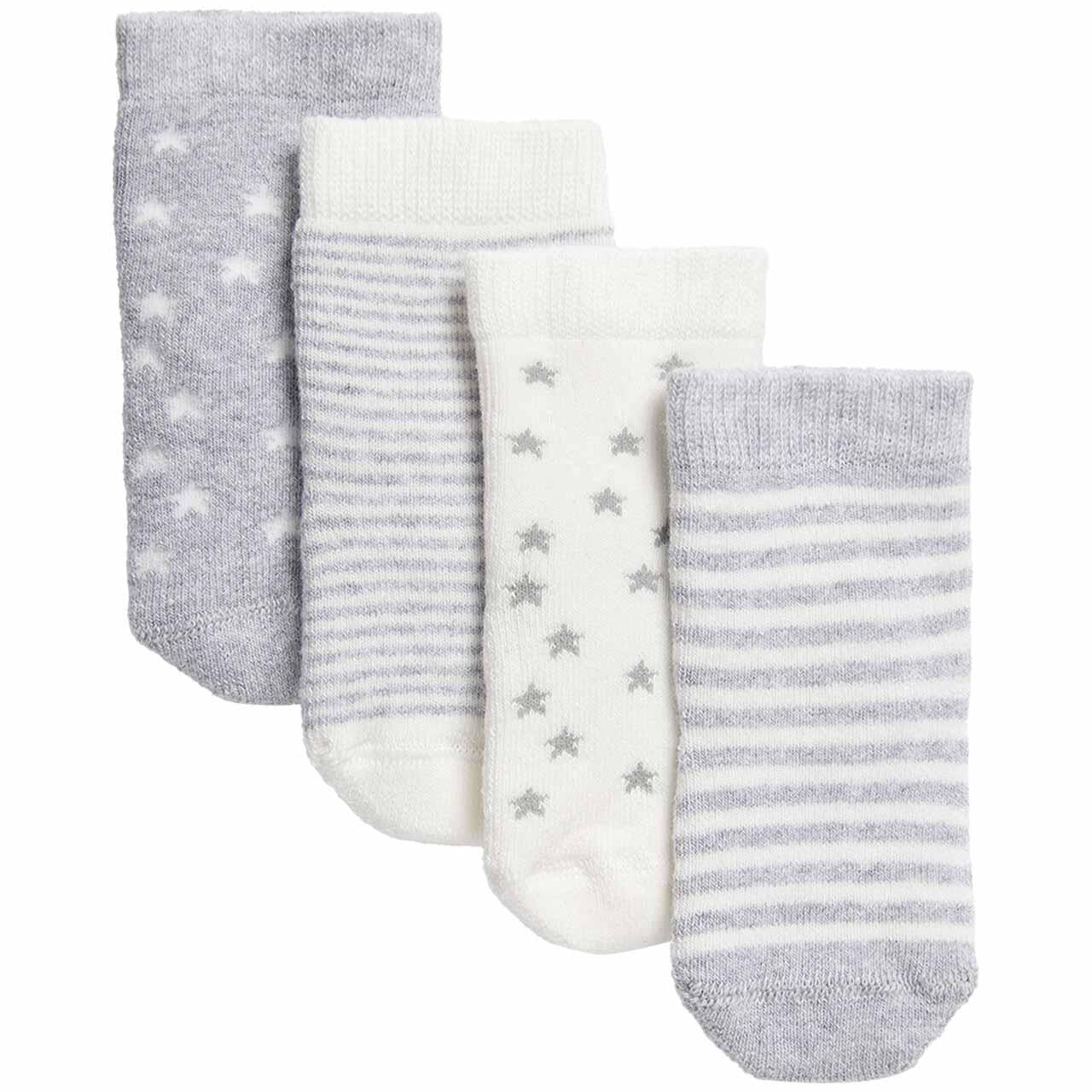 Refresh your little one's wardrobe with this practical four-pack of M&S baby socks designed for ages 12 to 24 months. These essential items combine quality construction with appealing aesthetics suitable for daily wear. The contents include a grey mix colour palette with varied patterns.