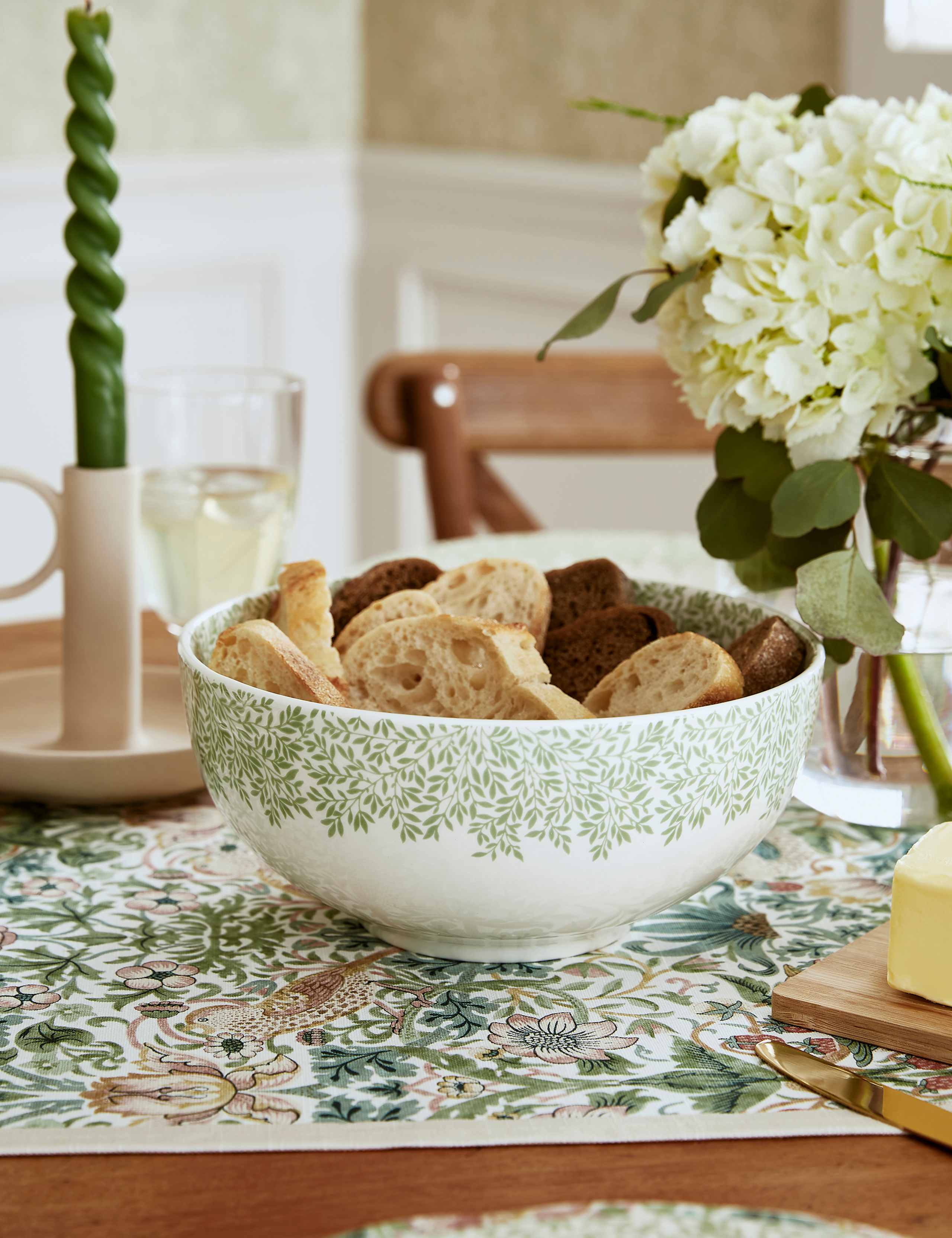 Read MoreThis serving bowl from Spode's Morris & Co. collection makes a stylish addition to your table. It's crafted from durable earthenware and embellished with a delicate leaf motif around the inside and outside of the brim. This bowl can be safely cleaned in your dishwasher.