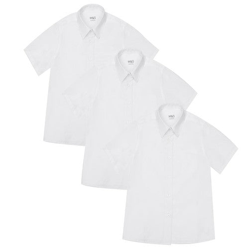 Read MoreM&S' short sleeve school shirt is a school day staple, available here in a handy extra value three pack. Each shirt is designed with timesaving Easy to Iron technology, a quick press and they are ready to go. All of the cotton for M&S' clothing is sustainably sourced and always will be.