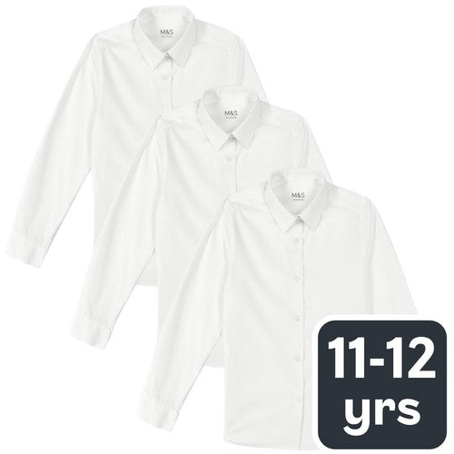 These MS girls' blouses offer a modern, stylish look with a contemporary slim cut through the body, ideal for today's uniform standards. Designed for convenience, this essential three-pack selection ensures a smart, crisp appearance throughout the school week. They are available in classic white to complement standard uniform requirements.