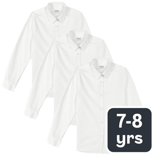 Made from Easy to Iron fabric and featuring a smart collar, plus our patented Expandicuff™ design (up to 8 years), this three pack of school shirts is everything you need for a smart and comfortable school wardrobe selection. Available in blue or white to suit classic children's school colours, your search for the perfect school blouse is over.