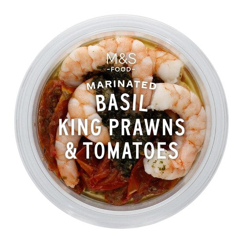 These M&S Marinated King Prawns offer a convenient and flavourful seafood option for any meal. They feature succulent king prawns sourced from Honduran fisheries, blended with semi-dried tomatoes and a fresh basil dressing. As these prawns are ready to eat, they provide an effortless addition to various dishes.