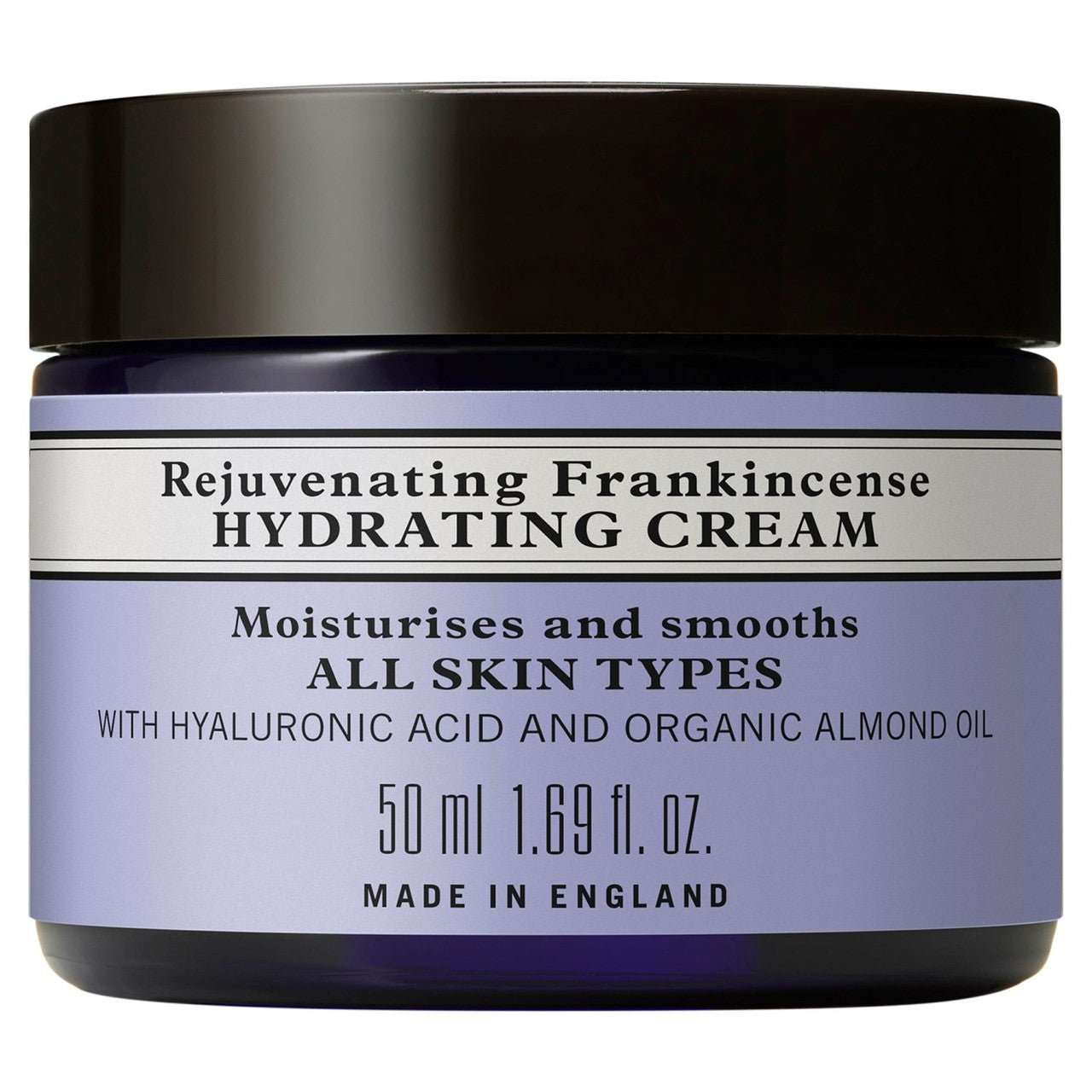 Read MoreThis beautifully light, best selling organic moisturiser, with rejuvenating frankincense and myrrh essential oils, keeps your skin soft and hydrated.For all skin typesInstantly hydrates and rejuvenates occasionally dry skinClinically proven to moisturise for up to 24 hoursDermatologically TestedApplication Apply using an upward circular motion, taking care around the delicate eye area. For best results, use daily after using our Rejuvenating Frankincense Facial Wash or Rejuvenating Frankincense Refining Cleanser and Rejuvenating Frankincense Toner.About The Brand Founded in 1981, Neal's Yard Remedies is a natural organic health and beauty pioneer. From small beginnings in a quiet corner of Covent Garden, weâve expanded to become an organic world leader, with a growing presence across five continents. The secret ingredient to our global success is that weâve always remained true to our belief that outer beauty and inner health should be in perfect balance.