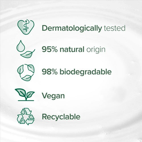 With vitamin E to leave skin feeling soft and nourished, Contains plant-based milk sourced from nuts, Contains ingredients of 95% natural origin**, 98% biodegradable formula, Recyclable bottle