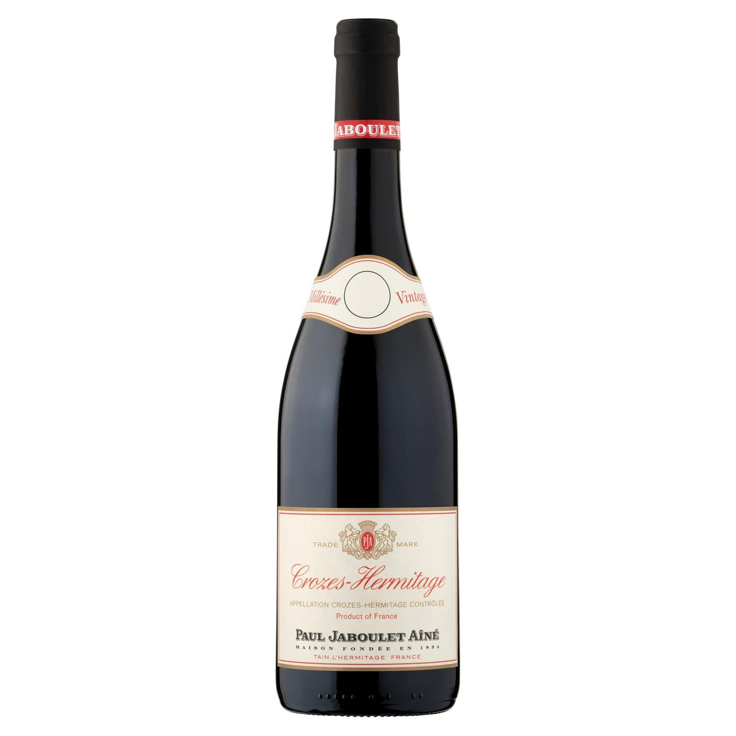 This Paul Jaboulet Aine Crozes Hermitage is a distinguished red wine sourced from the left bank of the Rhône valley. Crafted exclusively from the Syrah grape variety, reflecting the local terroir.