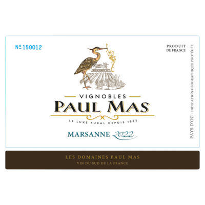 Product InformationThe Paul Mas vineyards are located in the Occitanie region of South of France, and are planted on the hillsides of the best wine-producing valleys of the region. Our Marsanne comes from low-yield vineyards; it is then aged in stainless steel tanks and partly in oak barrels. It develops nice aromas of flower and pear, finishing on acacia honey notes. It is a smooth and round wine, with a good acidity.