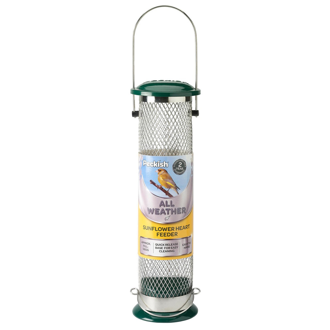 Peckish All Weather Sunflower Heart Feeder is simple and easy to fill and hang. The removable plastic insert included helps to reduce mess when feeding.