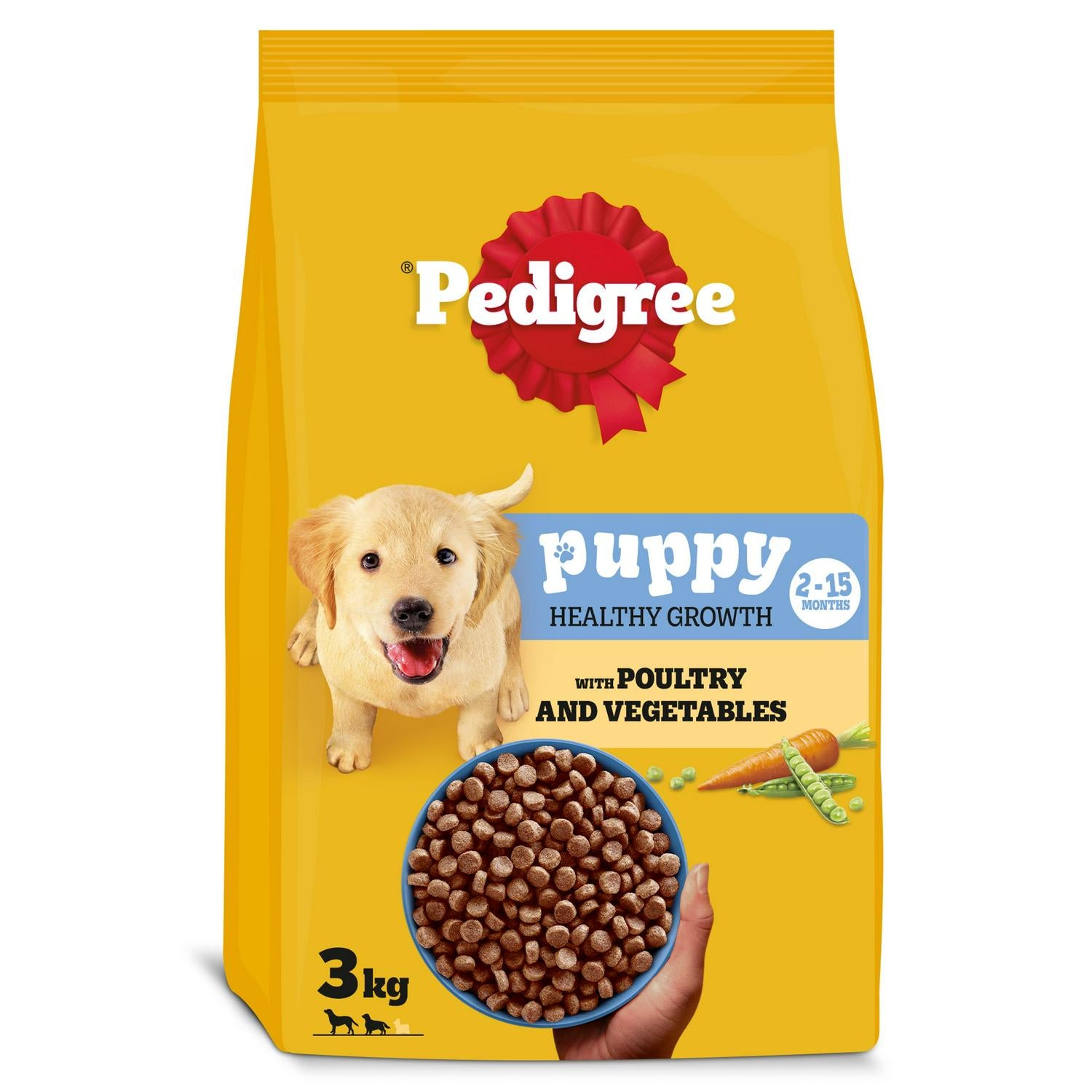 PEDIGREE COMPLETE puppy dry dog food is 100% complete and balanced and made with natural ingredients, plus vitamins and minerals and prebiotics, delivering everything that is essential to fuel all puppies exuberant love of life. All this with no added artificial colours, or flavours. Natural dog food that contains fibres, prebiotics, and highly digestible proteins to support puppies' developing digestive system Contains vitamin E that is known to help support natural defences, so they can get on with exploring the big wide world. Specially designed kibbles for small mouths, plus the right amount of calcium to support healthy teeth development. No added artificial flavours or colours