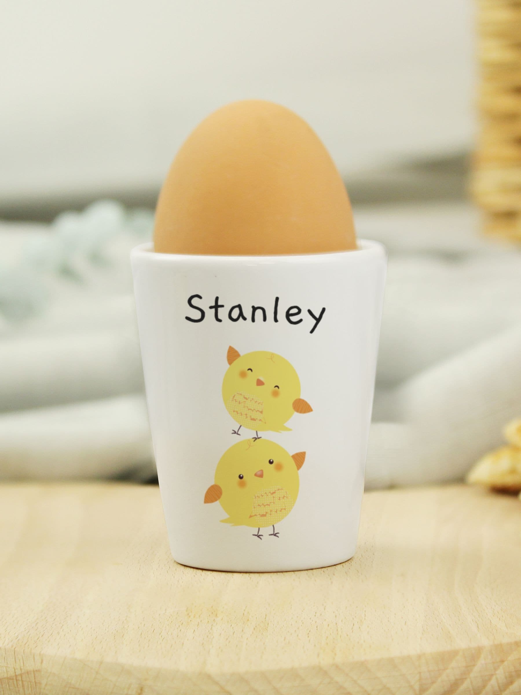 The personalisation will appear exactly as entered, adding a charming, personal feel. Made from ceramic, this egg cup is both durable and stylish, with a recommended handwash to keep it looking its best.