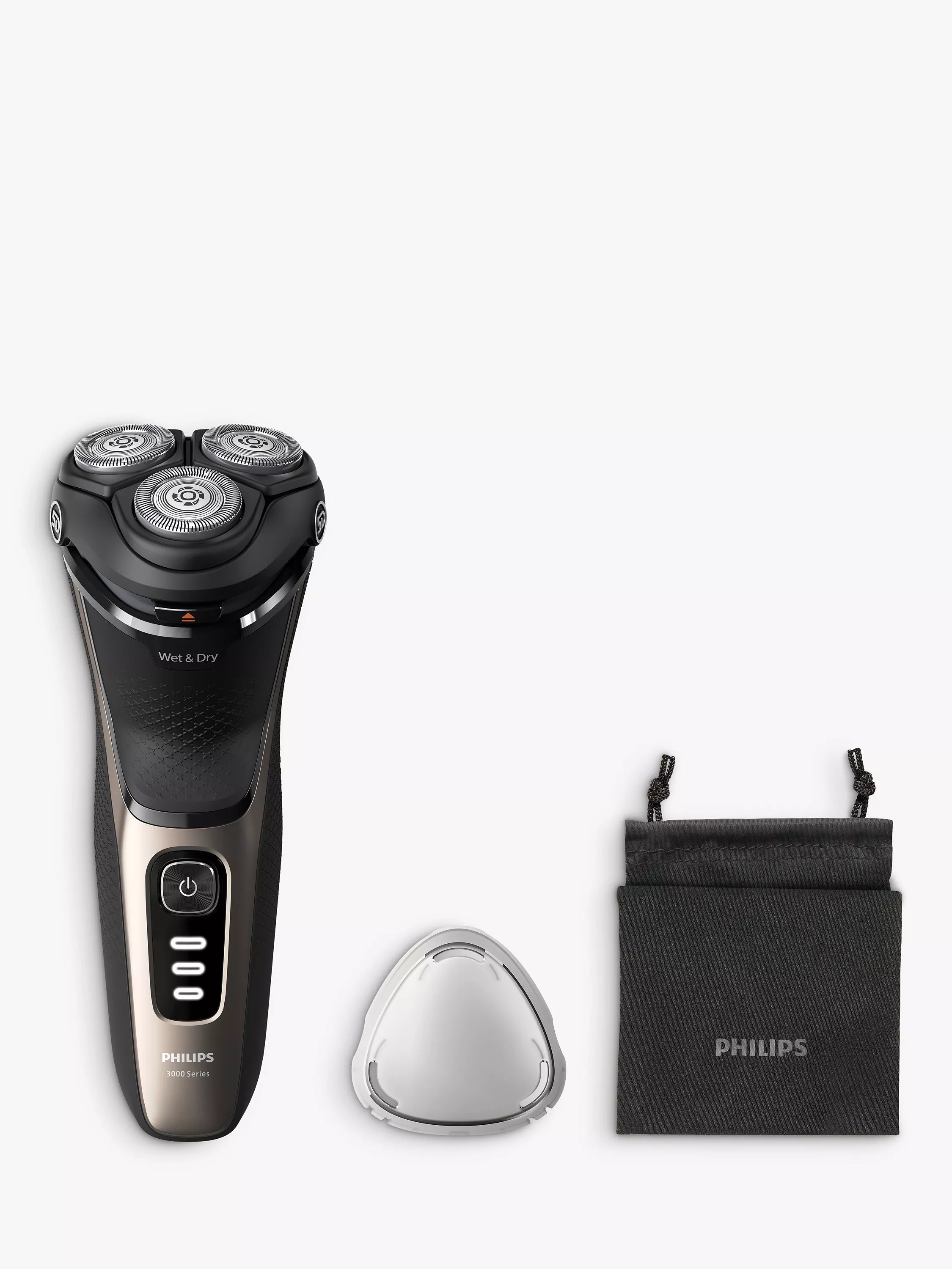 Philips Shaver 3000 Series Wet & Dry Electric Shaver gives you a comfortable, clean shave, even on sensitive skin. 5D Pivot & Flex Heads, 27 self-sharpening PowerCut Blades, and wet and dry use ensure excellent, reliable results every time.