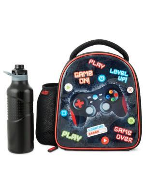 Keep kids reaching for lunch and staying hydrated with this cool Polar Gear gamer lunch bag and bottle combo. Made from durable, 600D polyester material. Fully insulated, our bags offer excellent thermal insulation to keep your food fresh, warm or cold. With a food safe PEVA, PVC FREE lining that features Steritouch® antibacterial technology. Printed name label on the bottom of the bag for easy labelling. Great for children at a lightweight 160g and ideal size at 22cm wide, 10cm deep and 25cm high. Matching 100% BPA free non-toxic reusable bottle included in handy mesh pocket. Large water capacity at 600ml. Made from recyclable, durable Polypropylene (PP) plastic. Features comfortable grip section and easy to use twist cap opening.