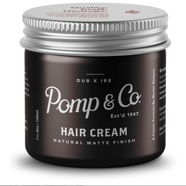 - Quality hair cream crafted by master barbers It leaves a matte dry finish, perfect for natural, textured styles The water based concentrated formula allows a light to strong hold and washes out easily All Pomp & Co. products have been put through their paces in our barbershop, by generations of master barbers Only the very finest formulas make it into our men’s hair care range
