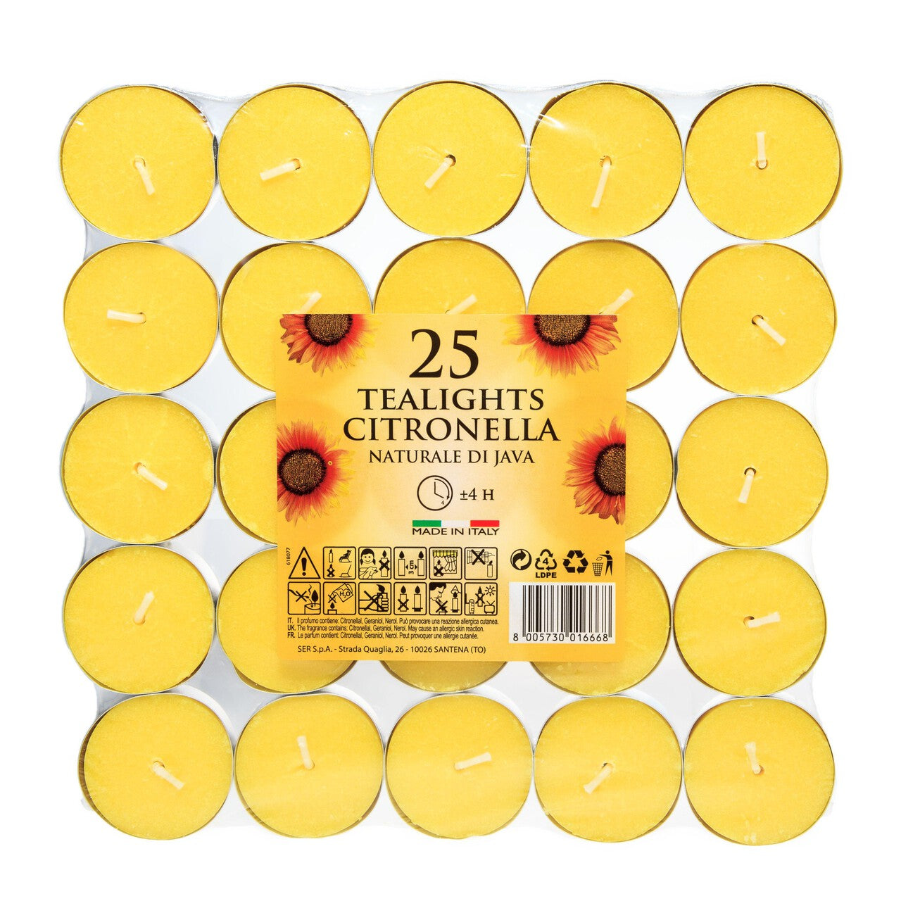 Part of Price's Candle Citronella rage, these Tea lights are perfect for the summer.25 x Tea lights per pack