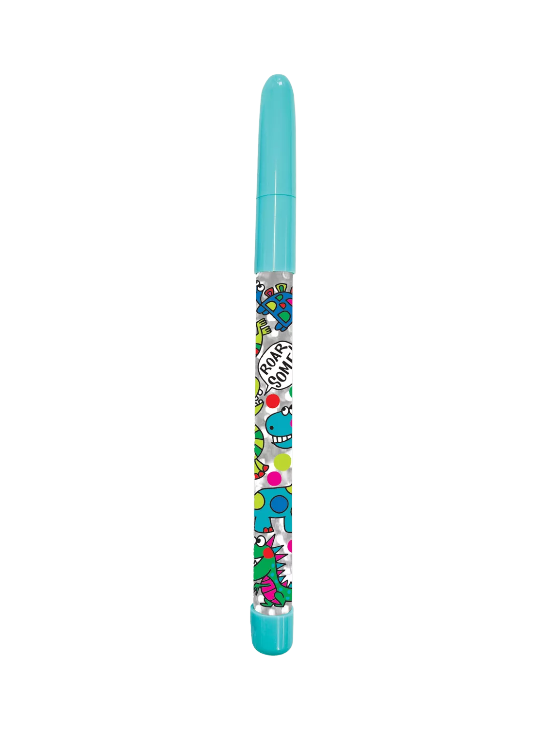 Add a touch of sparkle and fun to your writing with this mesmerizing glitter pen! Featuring colourful dinosaur illustrations, it's a delightful writing tool for kids and adults alike. The shimmering glitter adds a unique and enchanting element to every note.