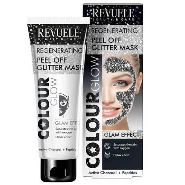 This Revuele Colour Glow Glitter Mask is specifically formulated to work intensely with key active components for skin enhancement. It utilises a blend of active carbon and peptides to support and target skin cell function effectively.
