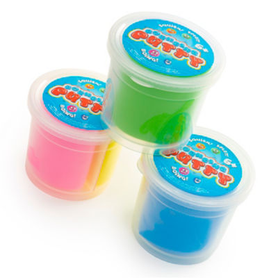 Please be aware that colours may vary. You will receive one at random. A prefect party bag filler for children's birthday celebrations You can Shape, stretch, squeeze & bouncy the putty for hours of fun! Why don’t you mixed the two colours together and create a new colour? Each reusable tub comes in two colours assortment, 3 tubs in a pack Assortment 1: 2 x Blue/Green 1x Pink/Yellow Assortment 2: 2 x Pink/Yellow & 1 Blue/Green Tub size: 7x4cm. Weight: 30g Warning - Not suitable for children under 36 months - Choking hazard with small parts. ADULT SUPERVISION REQUIRED AT ALL TIMES. AVOID CONTACT WITH EYES, WASH HANDS IMMEDIATELY AFTER USE. TAKE APPROPRIATE PRECAUTION, AS STAINING MAY OCCUR TO SOME MATERIALS/SURFACES. COLOURS & CONTENTS MAY VARY